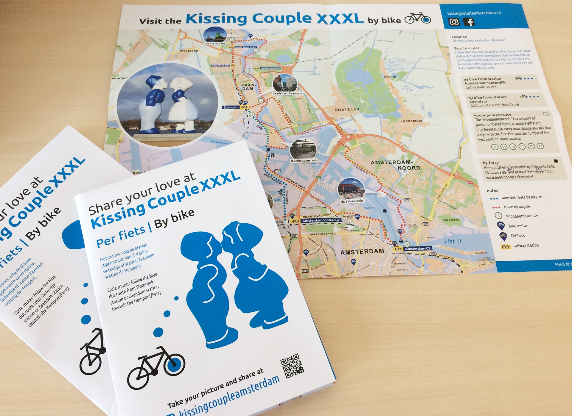 Dit bijna 10 meter hoge beeld is een initiatief van Bright Up. The Kissing Couple XXXL is een vrolijk markeer punt op de fietsroute tussen Sloterdijk / Amsterdam Centrum en Zaanstad, waar dagelijks steeds meer fietsers gebruik van maken. De beelden vrolijken de plek op waar fietsers wachten bij de Hempont, boten voorbij varen en mensen werken. Studio Grib heeft de identiteit, de website, routekaart, en het infobord ontworpen voor dit project.