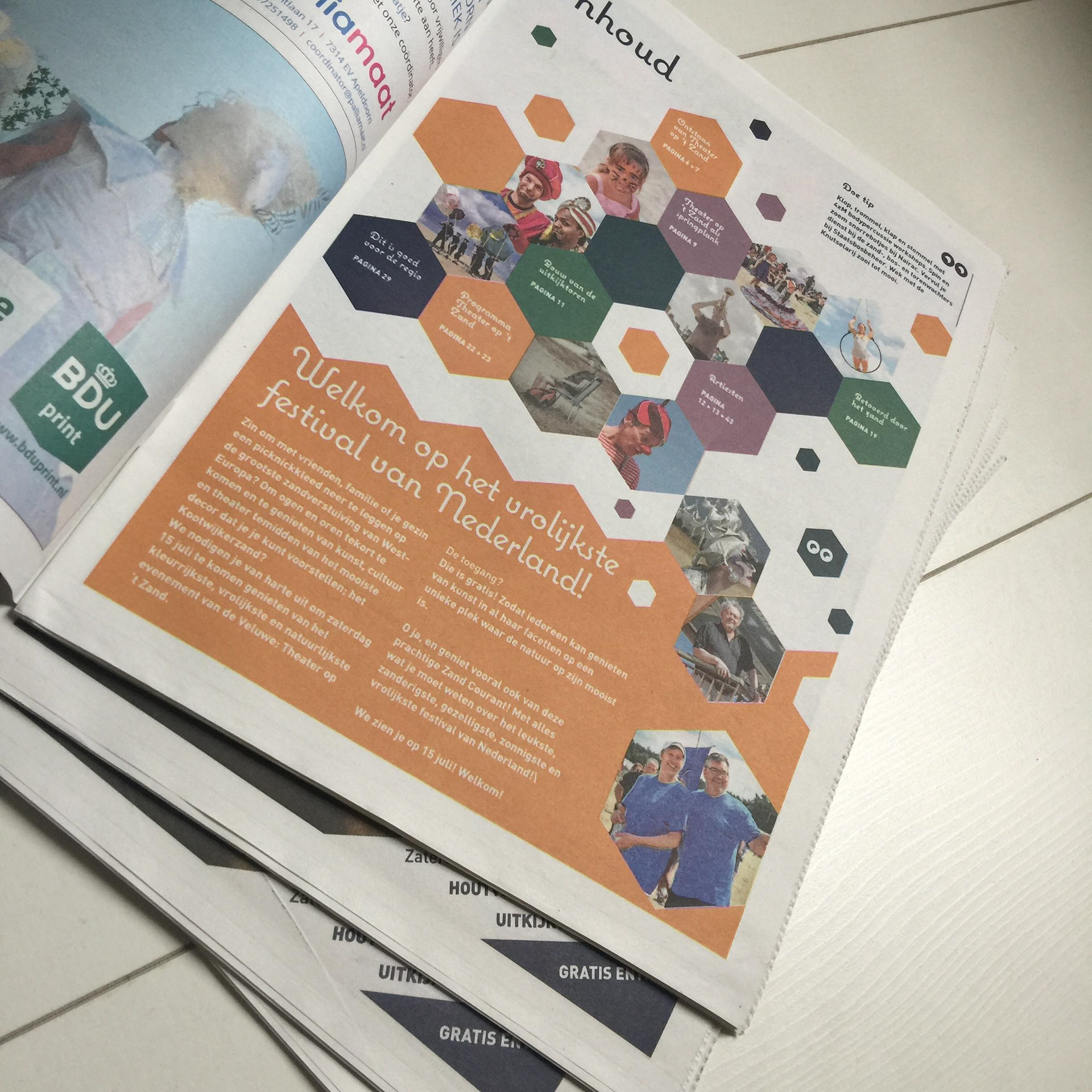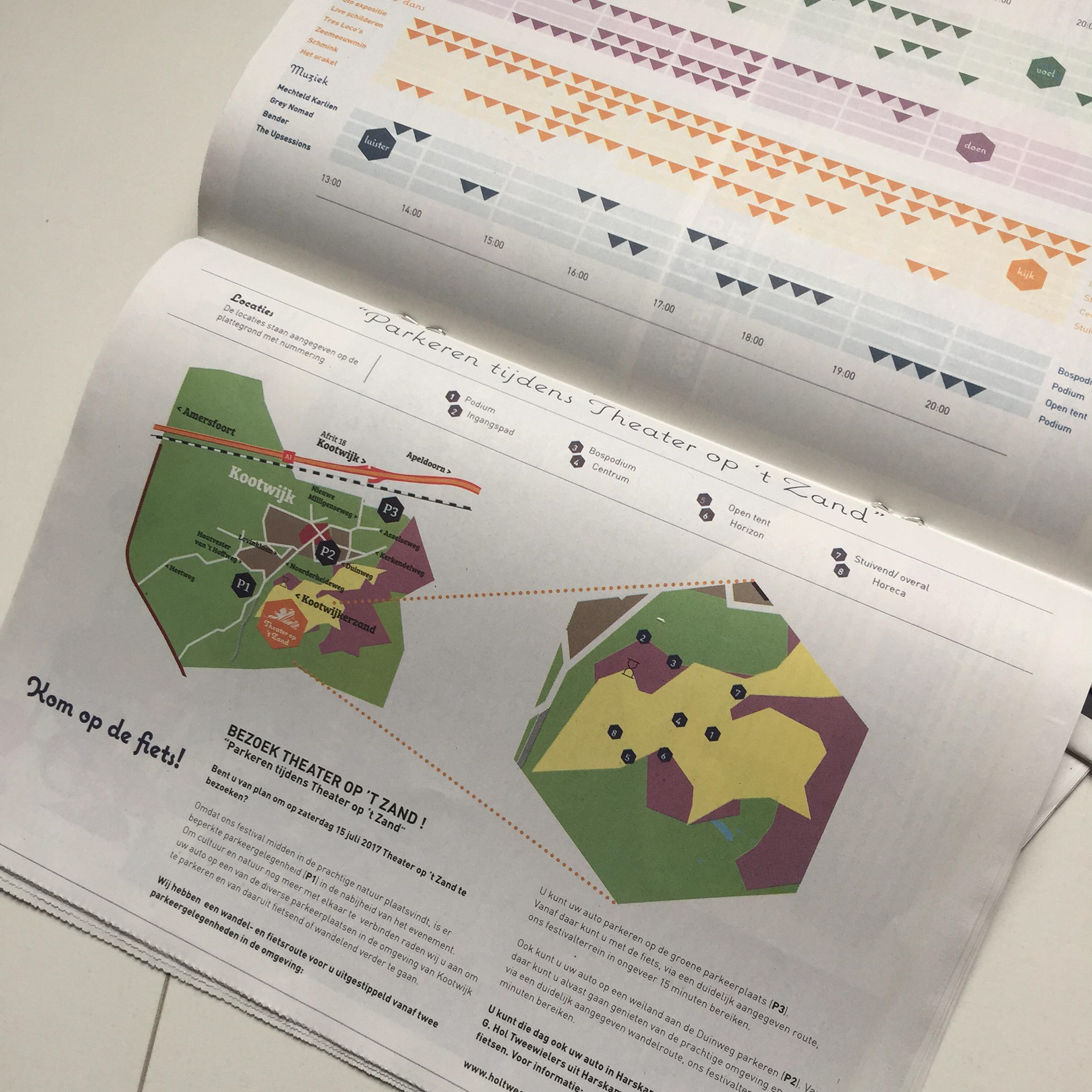 In 2017 is de eerste Theater op het Zand Courant uitgebracht. De inhoud van de courant is een verzameling van kleurrijke verhalen, festivalinformatie en sponsoren. Studio Grib verzorgde de artdirection en het basisontwerp.
